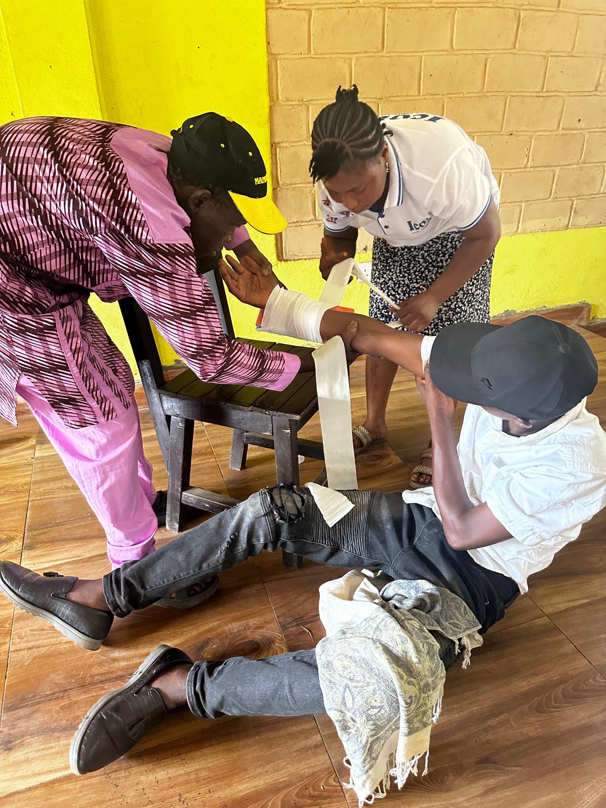Im Laufe der Schulungswoche beschäftigten sich die Teilnehmerinnen und Teilnehmer mit Hygiene und Krankheitsprävention, Erkennung von Unterernährung und Malaria-Warnzeichen sowie mit einem strukturierten Notfallalgorithmus, der Schritt für Schritt vorgibt, was man in Notfällen tut. Praktische Übungen zu Reanimation, dem Umgang mit Verbrennungen, Knochenbrüchen und Schlangenbissen – den ihn Sierra Leone häufigsten Notfällen bei Kindern – sowie zur psychologischen Seite der Ersten Hilfe gehörten zum Trainingsprogramm. Der Schwerpunkt lag darauf, mit einfachen Mitteln schnell und richtig zu reagieren, wo medizinische Hilfe nicht sofort erreichbar ist. Die Inhalte wurden nicht nur theoretisch, sondern gemeinsam auch praktisch eingeübt.